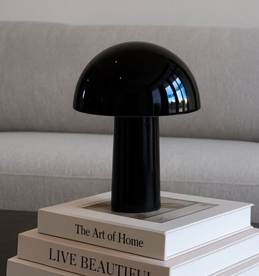 The black mushroom table lamp brings modern elegance and a sense of quiet sophistication. It doesn’t demand attention — it subtly completes the space.