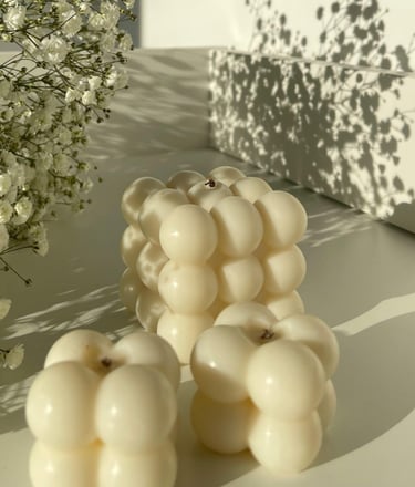 Sculptural candles add softness through shape and light. Their warm, creamy tone blends naturally into neutral interiors, offering a sense of comfort and calm.